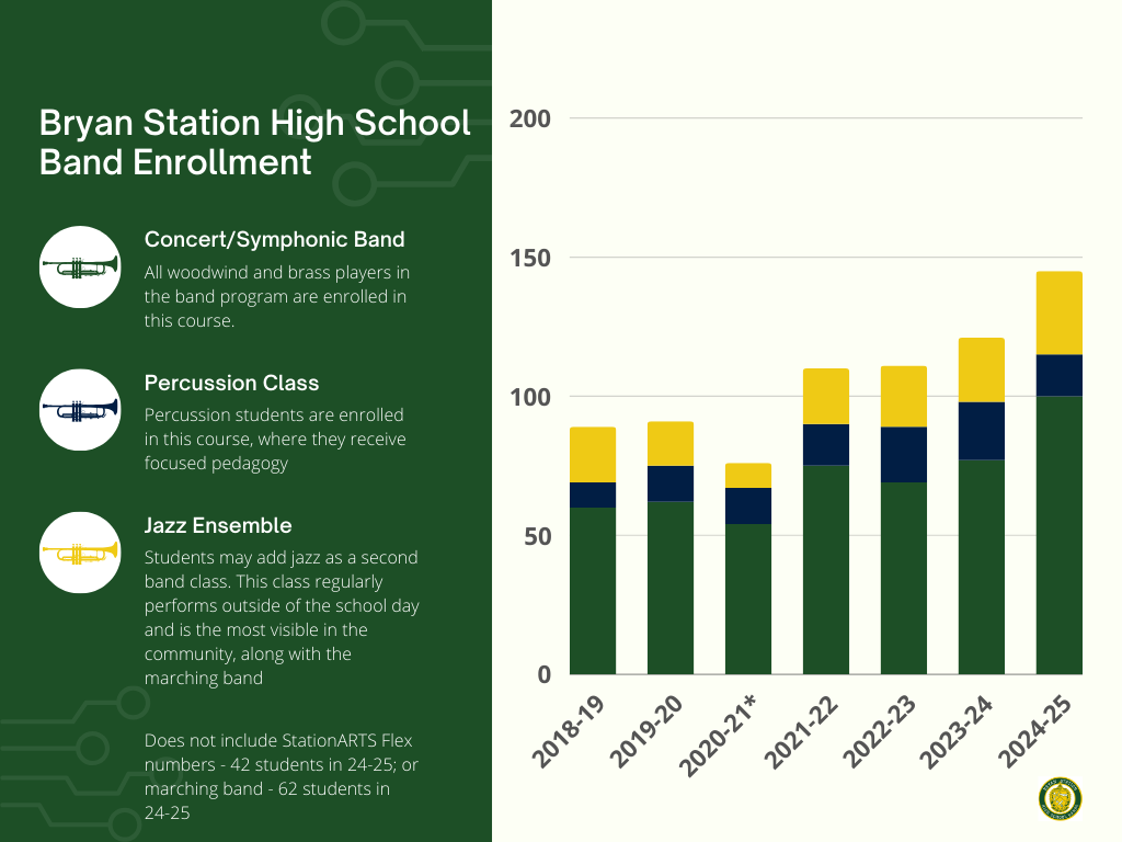 The band program at Bryan Station High School has a proud tradition of representing our school in community, city, state, and national events and preparing our students to appreciate and engage with music throughout their adult lives.